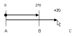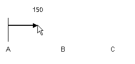 Single click to pick the position to end the next dimension on (point C in the diagram below), or if using Snap To Item pick the item you wish to snap the dimension on to. A documentation line will be drawn to show the end of the dimension.