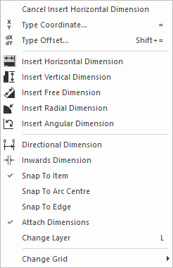 If required, right click the mouse to use the shortcut menu to change the layer of the dimension, or to change the grid you are using. -