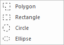 Select any segment of the area if it is a Rectangle or Polygon, or the complete Circle/Ellipse. Then select Properties by: