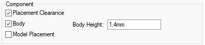 This body area is used by the component pushing when moving components interactively during the design process. It is used as the component boundary from which the component to component spacing is set. If this area does not exist then the component bounding box is used. The component body area is also used by the Auto Placement tool.