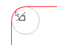 Once the Edit Shape Using Construction Region option is selected from the context menu of a selected shape, a selection region indicator is displayed. This will be either a solid shape to indicate the shape will be modified outwards, or a dotted region shape to indicate the shape will be modified inwards. If the shape can only be modified in one direction, then only the solid indicator is shown. Some regions cannot be selected because they might create self-intersecting shapes.