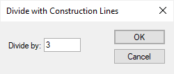 This option uses the same interactive procedures as the Bisect option above, but adds multiple construction lines to divide the angle or line into multiple parts. When the option is chosen, the following dialog is given to get the number you want to divide by. If you are already in the Divide option, select the Change Divide By option from the shortcut menu to change the divide number.