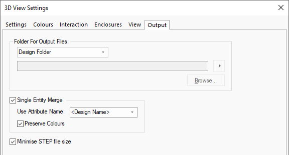 Available from: (3D Viewer) 3D Design menu > 3D Settings> Output tab