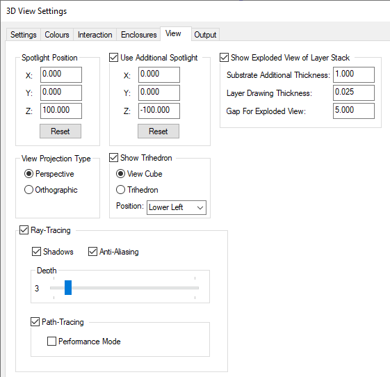 3D Settings | 3D Colours | 3D Interaction | 3D Enclosures | 3D Output | 3D Layers | STEP Library