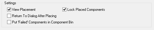 - Put ‘Failed’ Components in Component Bin : check this box to place any components that cannot be placed (for example if there is not enough room for them) into the Component Bin. Clear this box to have these failed components arranged around the outside of the board outline.