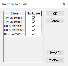By using the To Route switch, net classes can be selected or deselected for use.