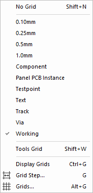 You can also use the Next Grid and Previous Grid commands to change the current grid to the next or previous grid in order as shown in the Change Grid dialog. These commands are not on the context menus by default as they are designed to be assigned to shortcut keys.