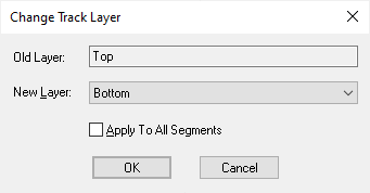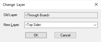 The current layer used for the item is shown in the Old Layer box. If multiple items were selected on different layers, [Different] will be shown. The New Layer box will be setup if possible with the corresponding layer (same Layer Type and Class) on the other side of the board. This makes it simple to swap layers from one side of the board to the other.