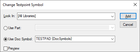 Used during Insert Testpoint operation. It you are adding a Testpoint that is a Part or Documentation Symbol, use this option to change the Part or Symbol to be used.