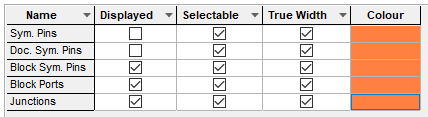 This tab is used to control the colour and visibility of pins, block ports and junction points.