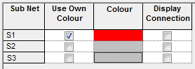 If you check the Use Own Colour option alongside a sub net name, all items on this sub net will be drawn in the colour shown in the Colour column. This is useful for highlighting specific sub nets prior to working on them. This option is in addition to the Mark Net command.