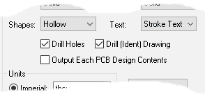 For a PCB or Panel Design extra options are: