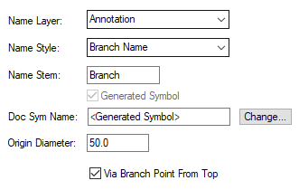 The Name Stem is the default name that the Branch Point Name will take when adding a new Branch Point to the design. Each Branch Point will have a unique Name.