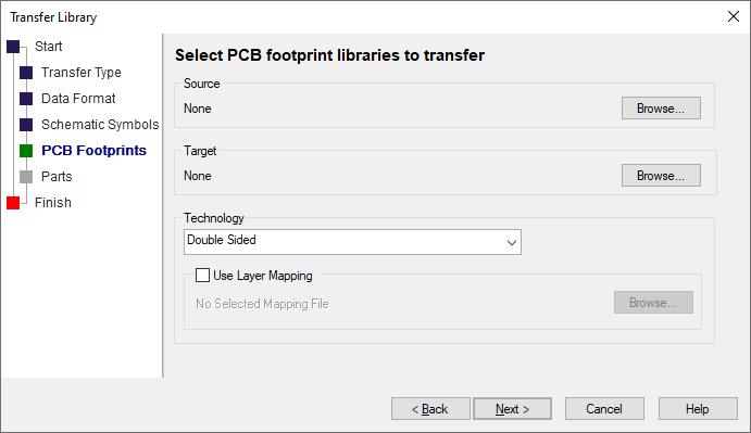 Once you have selected one or more libraries, the target library names will default to the selected names with specified Pulsonix footprint library extension.