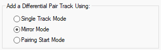 The two routing modes that you would normally use for differential pair routing are Mirror Mode and Pairing Mode.