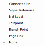 Signal Reference - Use to add a signal reference. Displays the Insert Doc Symbol dialog to choose which signal reference to add (unless this net already has a signal reference it can copy). Use this to add symbols to indicate the use of the net, e.g. a ground symbol indicating it is the GROUND net. Signal Reference symbols are created as a type of Documentation Symbol.