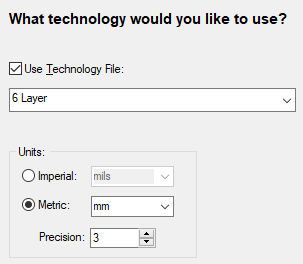 The Footprint Wizard Technology page allows you to specify your technology requirements for defining your footprint. As with the rest of the application, the Footprint Wizard utilises Technology Files as means of applying a consistent set of rules and constraints to the design process.