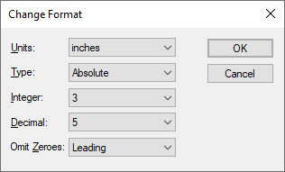 The fields on this dialog allow you to control the formatting of coordinates in your output files, and should be set up as required by your fabricator. The values you choose are stored in the system Registry, and will therefore be available to be used for all plots.
