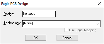 When requested for a Technology File, select [None] from the drop down list. The Technology file is not required for importing Eagle files unless you wish to use existing technology items, such as Layers etc.