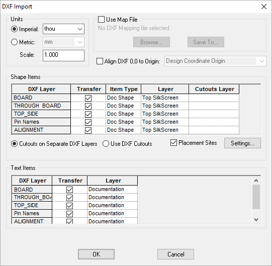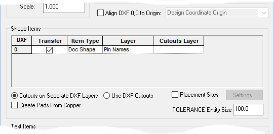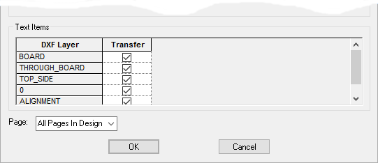 Similarly you can specify which DXF layers that you want to transfer text data from and in PCB designs which design layer that you want the text to go onto.
