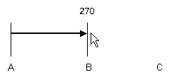 Single click to pick the position to end the first dimension on (point B in the diagram below), or if using Snap To Item pick the item you wish to snap the dimension on to. A documentation line will be drawn to show the end of the dimension.