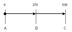 Single click to pick the position to end the next dimension on (point C in the diagram below), or if using Snap To Item pick the item you wish to snap the dimension on to. A documentation line will be drawn to show the end of the dimension.