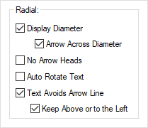 Arrow Across Diameter - If displaying diameter text, check this box if you want the arrow to cross the whole diameter of the circle or arc instead of just to the centre.