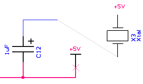 All Connect Guides should be converted into connections for the schematic design to be complete. You can double click on a Connect Guide to produce a physical connection manually using the method described in Insert Schematic Connection, or you can use the Route Selected Connections option from the shortcut menu to let the program automatically create the connection.