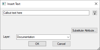 Use the Substitute Attribute button to paste an attribute name into the callout text in such a way that it will be substituted with the attribute value when the callout is added to the design.