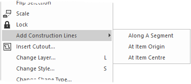 If Snap To Item is being used, check the Snap To Edge option to cause the construction line point to snap to the nearest edge of a selected item, rather than its origin or the nearest point on its centre line if it is a segment.