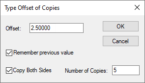 When one Construction Line or two perpendicular Construction Lines are selected, the Copy with Offset option is available on the context menu. This allows parallel lines to be created at a specified offset from the original line. When used with 2 selected lines, it can form a grid of equal spacing using the lines by selecting the Number of Copies to use. If the Copy Both Sides check box is selected, it will copy the number of Steps selected both sides of the original selected Construction Lines.