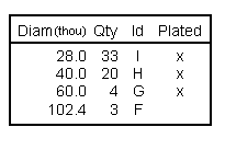 A drill table shows the number and sizes of the drills used for a given layer span. It also shows the drill letter to be used and if the hole is plated.
