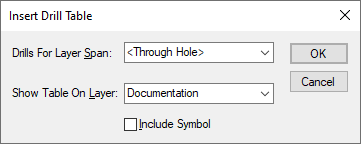Before placing the drill table in the design, you must specify which Layer Span the table applies to (you will normally have a <Through Hole> span, but you may have others defined for a blind or buried via technology).