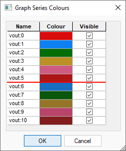 Selecting the bar or text to the right of the graph displays a dialog from where the colour and visibility of nets displayed can be defined: