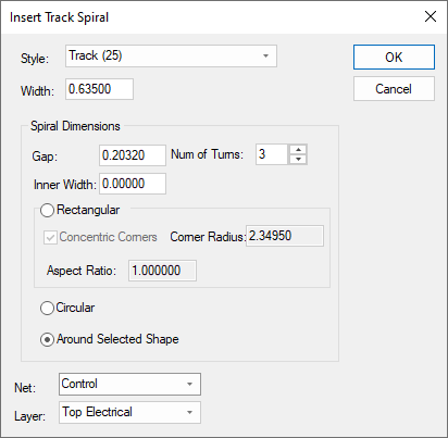 Select the Net to connect the spiral to. For Tracks you must select an existing net, but Copper does not have to be on a net.