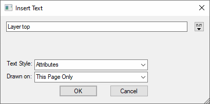 From the main menu select the Insert menu, from this select Text. This displays the Insert Text dialog: