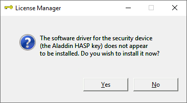 The license is automatically checked when the License Manager program is first started. If the driver is not found, a message box will appear: