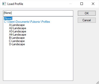 From the Main Menu select Setup, and Load Drawing Profile. The Load Profile dialog is displayed: