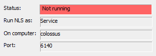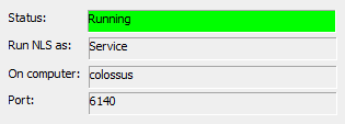 The first of these is a small status display that shows you the basic information about the server and the connection to it. Here we can see that NLS (the NLSD program) is running as a service, on a named computer, and that NLS is already running.