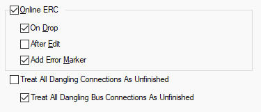 If this is checked, some level of electrical rule checking will be performed when adding connections and adding items to nets. At the moment only the checking of Pin Type Pair Rules is done by the online check. The depth of this checking is determined by the following options.