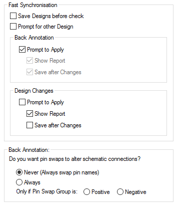 Design Settings - Synchronisation | Back Annotation | Synchronise Designs