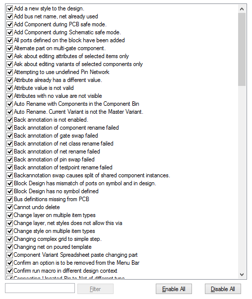 Use the Enable All and Disable All buttons as a quick way to check and uncheck all the messages.