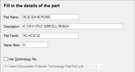The Part Wizard can use a part technology file as a source of default net names, attribute names and pin types. This helps you to create parts using standard naming conventions.