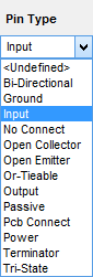 Pin Type specifies the type of this pin. Choose the required pin type from the drop-down list: