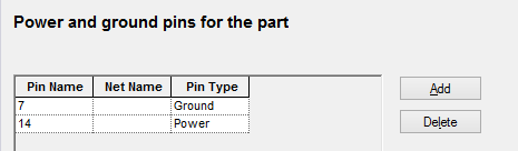This list will contain names taken from the part technology file if used, or a standard list of pin types. Setting the pin type to power or ground will add the new component’s pin to the PCB or Schematic design’s power or ground net.