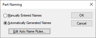 From the Edit menu, you can also select the Part Naming mechanism when starting a new part using the Part Naming option: