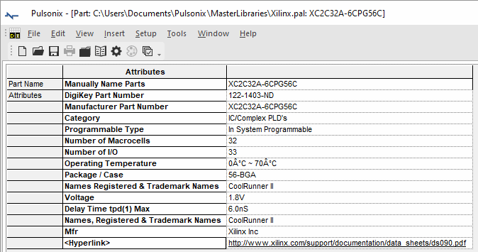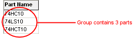 These parts are then stored together in the library, and reloaded into the Parts Editor as a group when any of the parts in the group are opened for editing. In the example shown below, this group of parts in the 74 series of logic components contains three parts, which only differ in the part name.