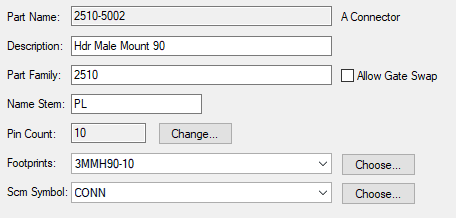 For Connector Parts, there is a check box to Allow Gate Swap. This allows connector pins to be swapped between equivalent connectors using Swap Gates. They can only be swapped with equivalent pins which have the same pin swap value defined.
