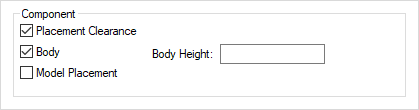 Use the Body Height: box to specify the height of the component body. This height will be used in checking against component keep out areas. Note: if no units are added to the end of the height value, it will use the units of the design when used.
