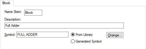 Symbol is the name of the Symbol used with this block. The Symbol can be From Library or as a Generated symbol.